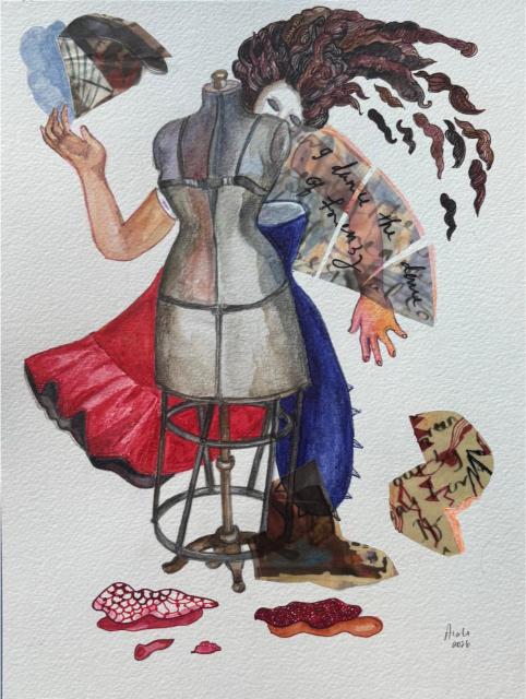 Ink, watercolor, Acrylic and printed
