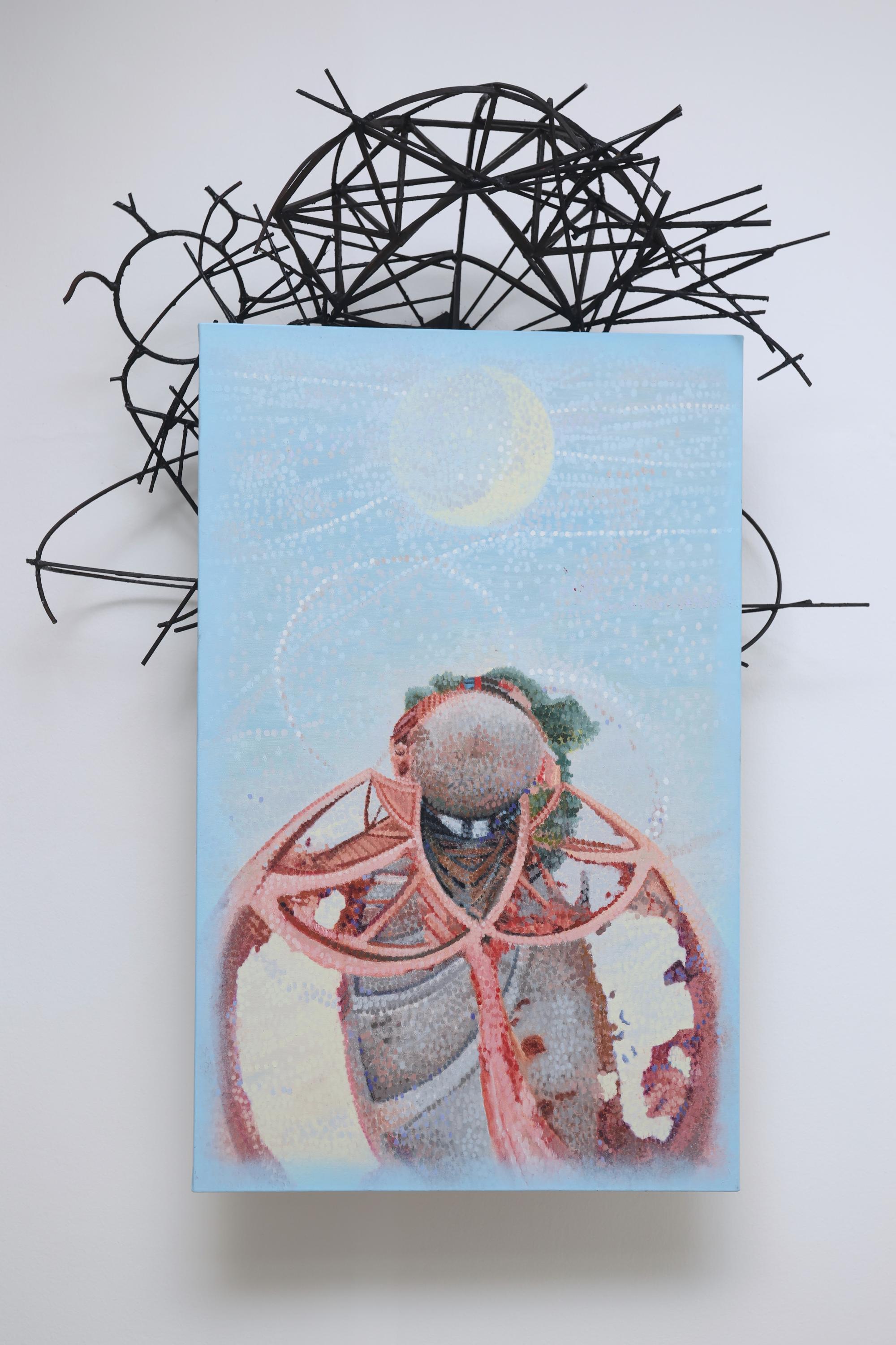 Oil on canvas and iron