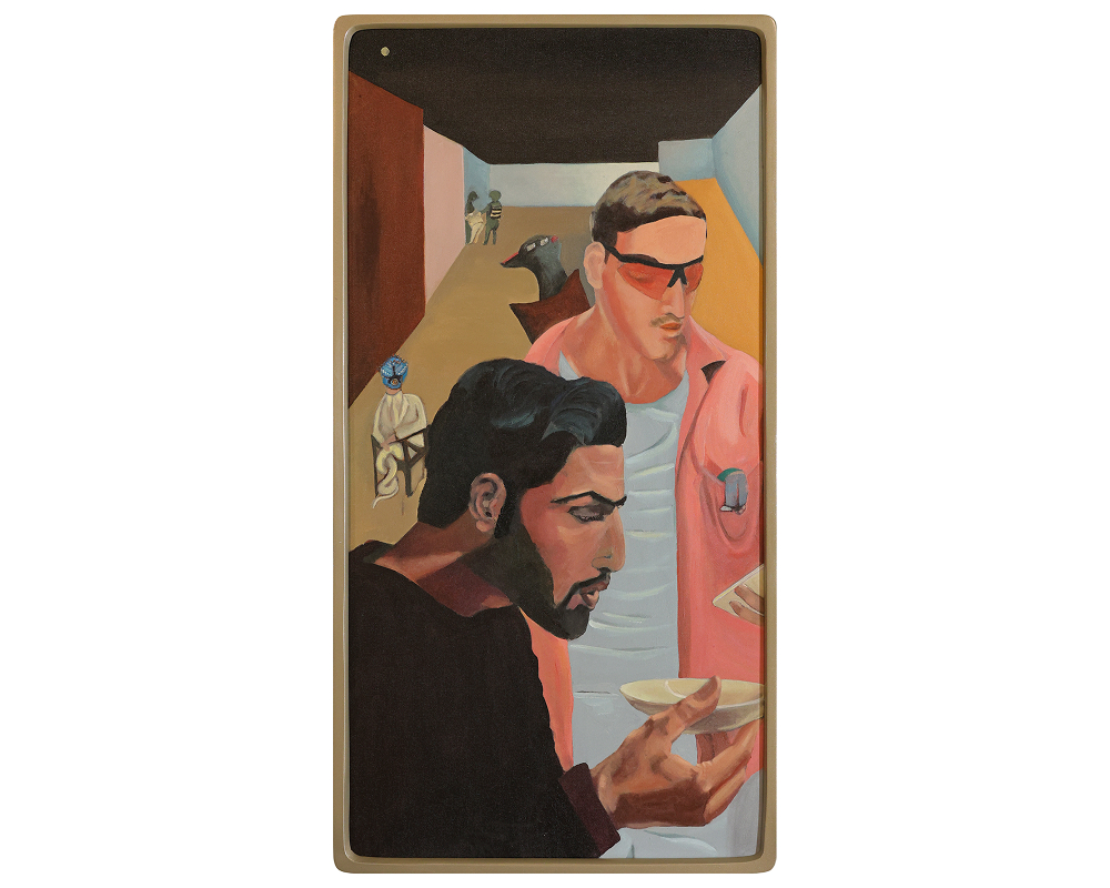 Acrylic on canvas and hand-carved teak wood frame