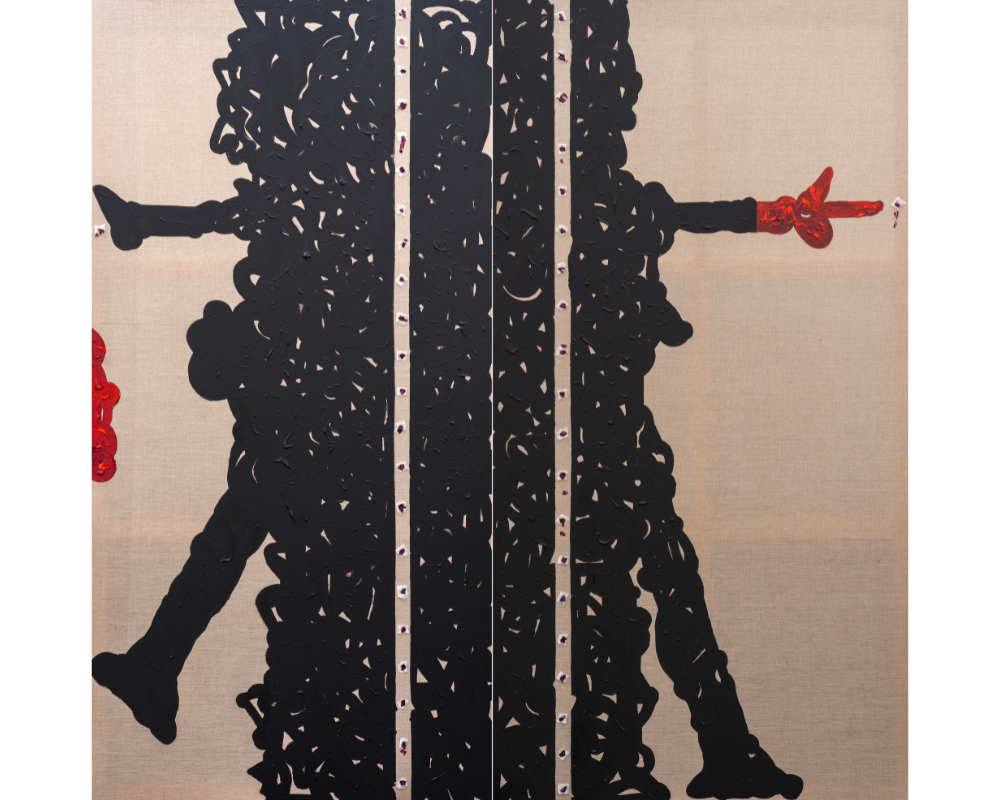 Acrylic on unprimed , Linen Canvas, Diptych 78 x 78 inches