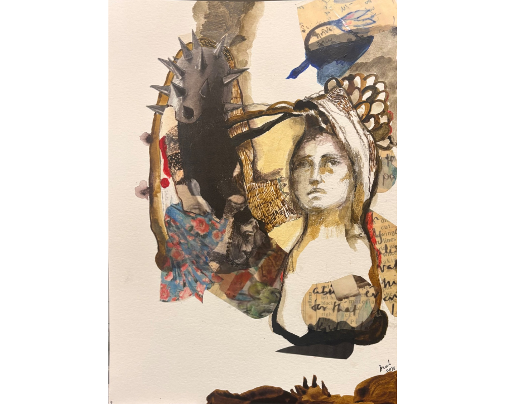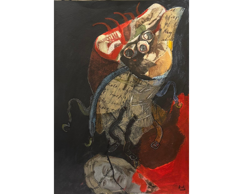 • Acrylic, ink, pencil and printed image on watercolour paper