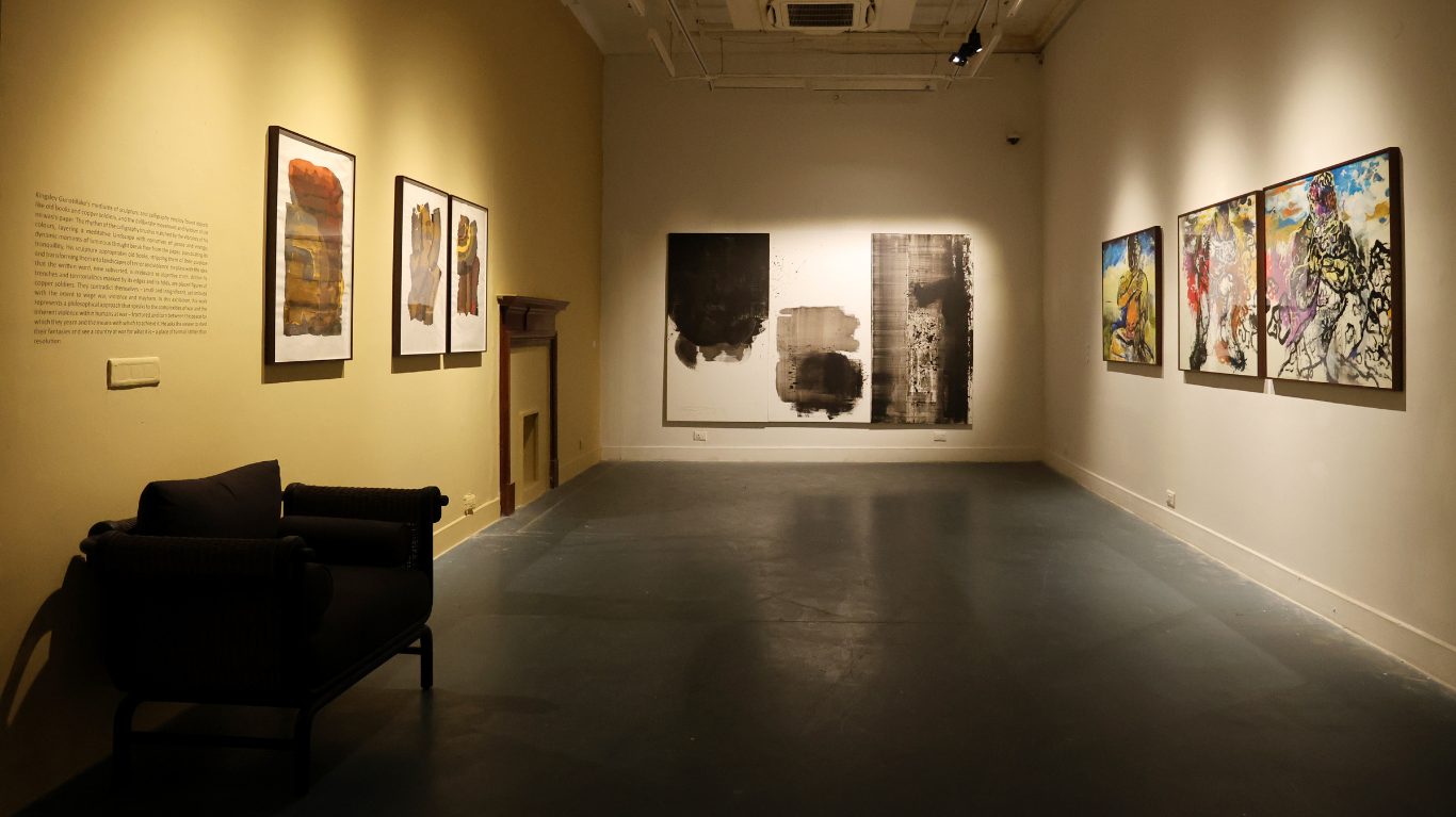 The exhibition presents diverse approaches to these complex themes. Jagath Weerasinghe’s figurative works directly respond to the social and political violence of Sri Lanka’s conflicts, urging the viewers to look beyond simplified narratives and recognise the politics of nationalism. Kingsley Gunatillake’s sculpture and calligraphy-inspired work, explores the complex relationship between violence as a tool and the elusive peace it seeks to achieve. Pala Pothupitiye’s historical approach challenges the viewer, provoking a new ‘social consciousness’ to problematise power, capital and vested interest in the aftermath of war. Muhanned Cader’s visualscapes depict the land, sea and sky as silent witnesses to the violence inflicted upon them as victims, and not, simply, as landscapes of war. Anoli Perera interrogates the complexities of gender as it intersects with violence, memory and loss through a labour-intensive process of transforming raw materials, exposing the patriarchal structures of violence that marginalises women’s specific traumas and experiences. Finally, Chandraguptha Thenuwara’s work compels the viewer to shed their blindness and confront the ‘every day’, to question power and to seek truth, justice and accountability.