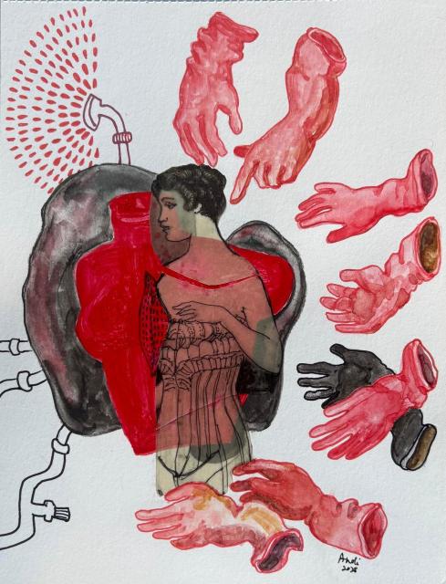 Ink, watercolor, Acrylic and printed