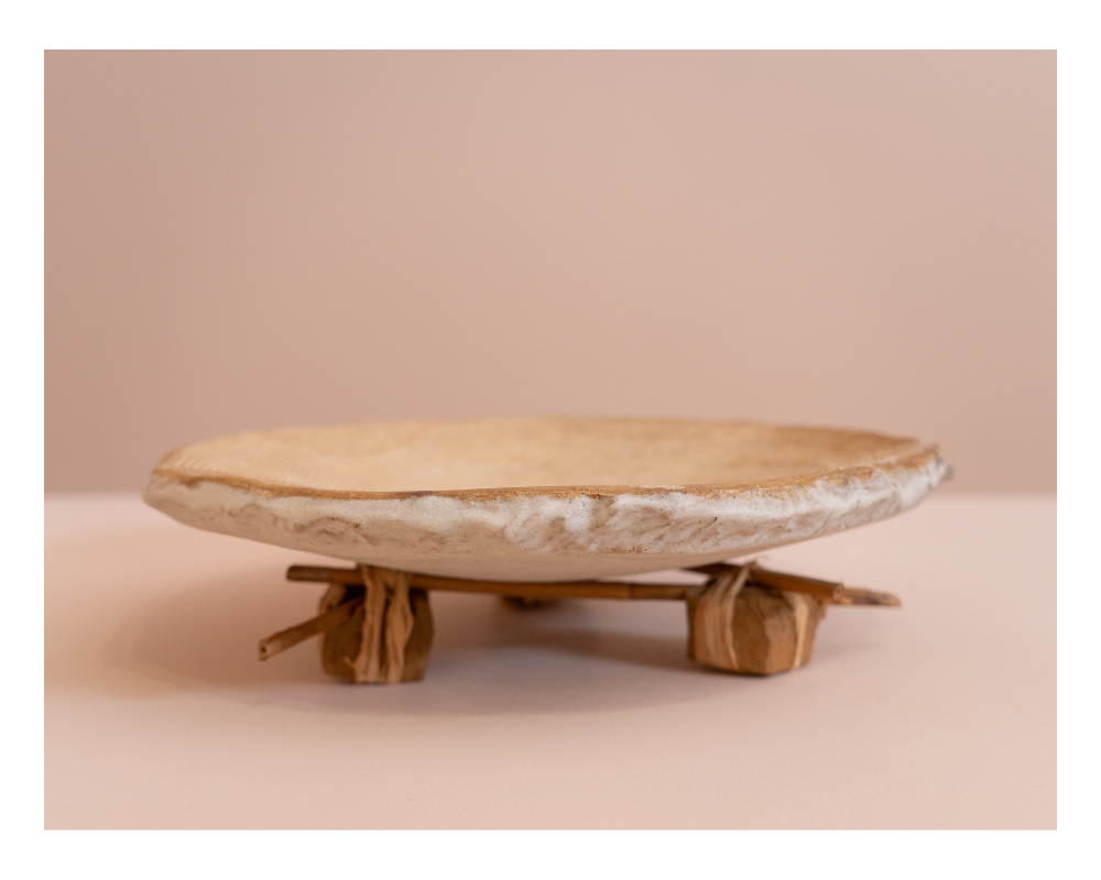 Stoneware With White Matt Glazed on Bamboo and Ceramic Stand